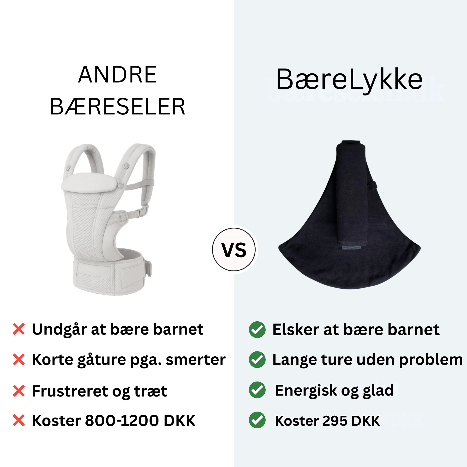 BæreLykke er en ergonomisk og stilfuld BæreLykke designet til moderne forældre, der ønsker at være tæt på deres barn uden at gå på kompromis med komfort eller frihed. Den fordeler vægten jævnt for at mindske belastning på ryg, skuldre og hofter – og giver dig mulighed for at bære dit barn fra 9 måneder til 4 år (op til 15 kg).