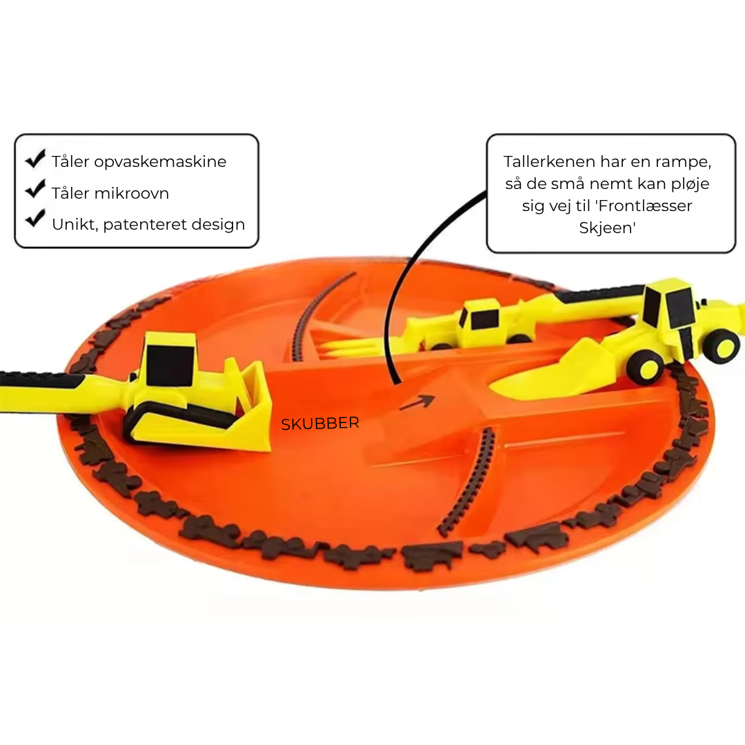 Inspireret af biler og byggepladser kombinerer hvert stykke funktionalitet med leg – perfekt til små chauffører, der elsker at lege, mens de spiser.