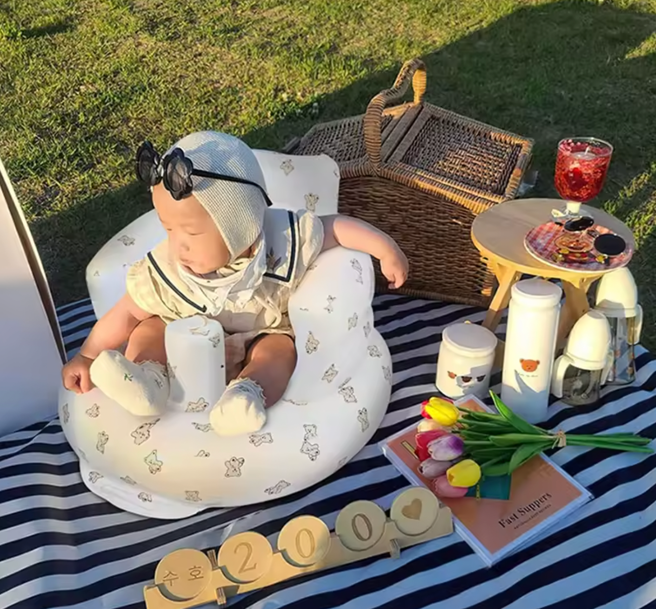 Tag den med på stranden, i parken, på restaurant eller hjem til mormor – pust den op, og så er I klar! Ingen store stole, ingen besværlig opsætning.