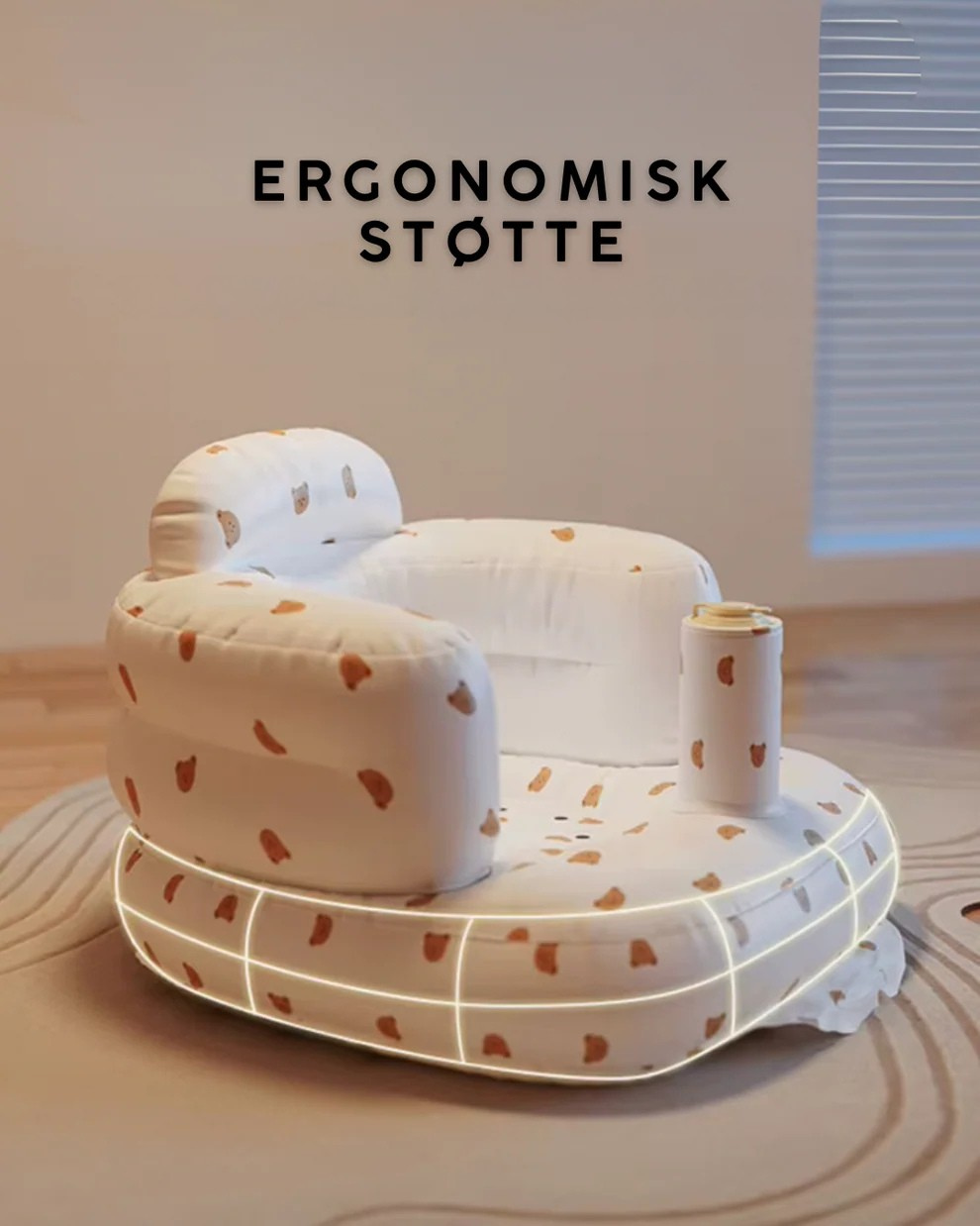 BlødBænk™ er lavet til de små, der lige er begyndt at sidde op. Den hjælper dem med at sidde sikkert, støttet og hyggeligt.