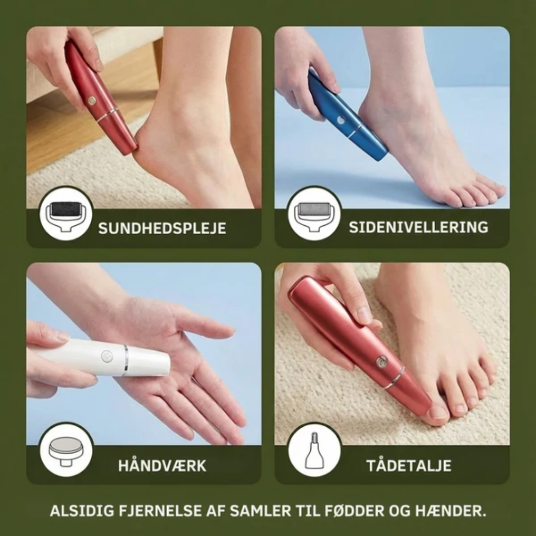 Én enkel enhed, der gør fodpleje hurtigt, effektivt og nemt derhjemme.