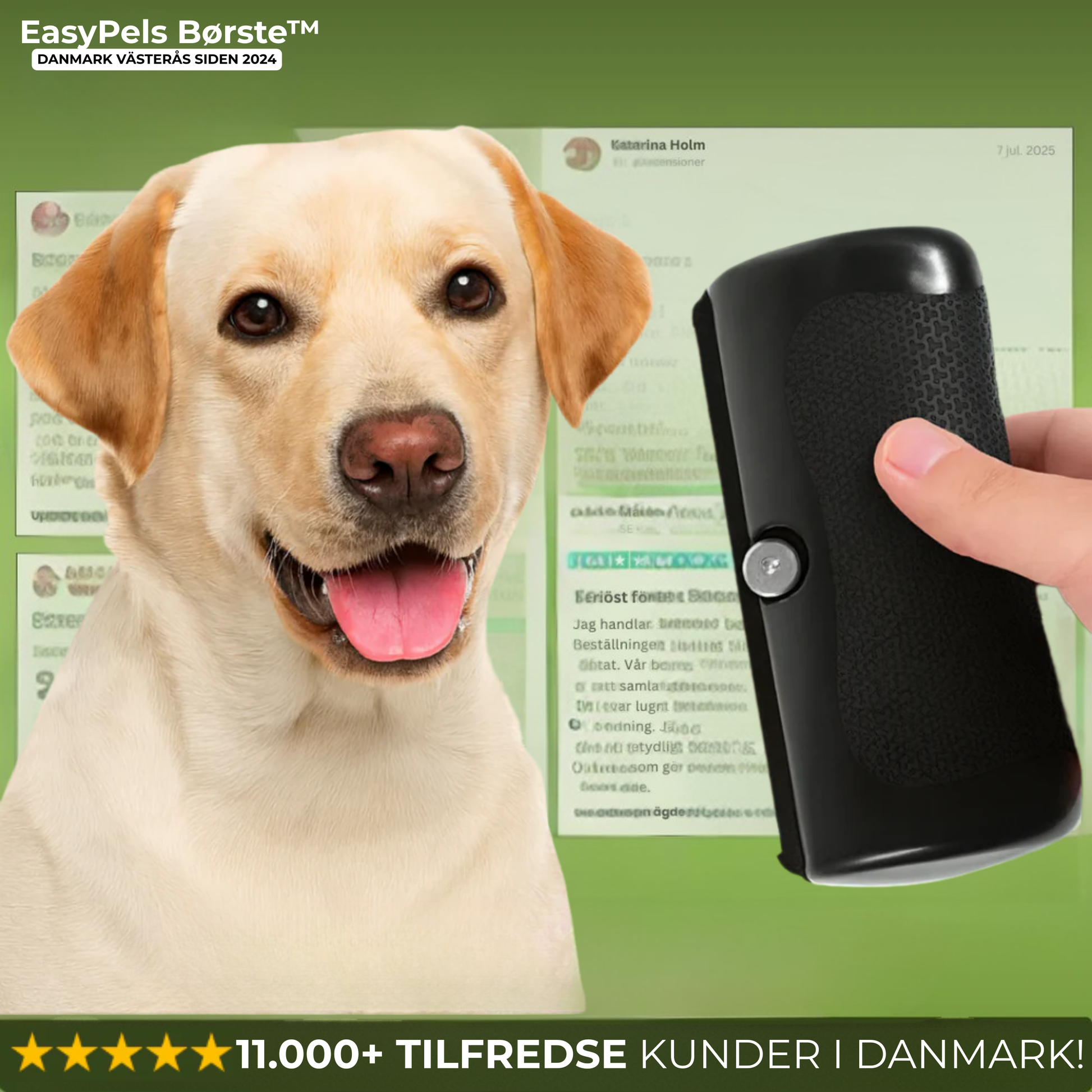 Med en rating på 4,8 ud af 5 stjerner fra hundredvis af verificerede kunder er denne børste blevet en favorit i tusindvis af hjem. Hvalpe, ældre hunde, lang- eller korthårede racer – alle oplever en gladere og renere børsteoplevelse.