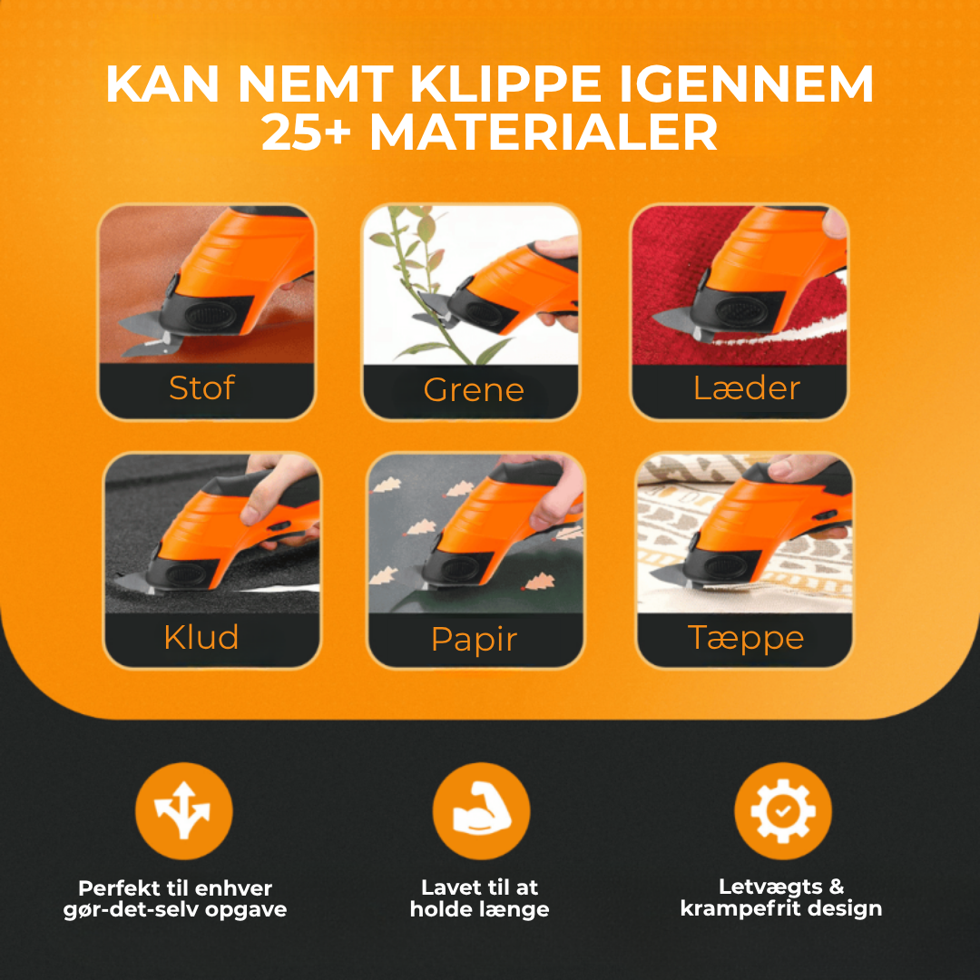 ✅ Klipper ubesværet gennem 25+ materialer – fra tynde stoffer til robust pap og læder.