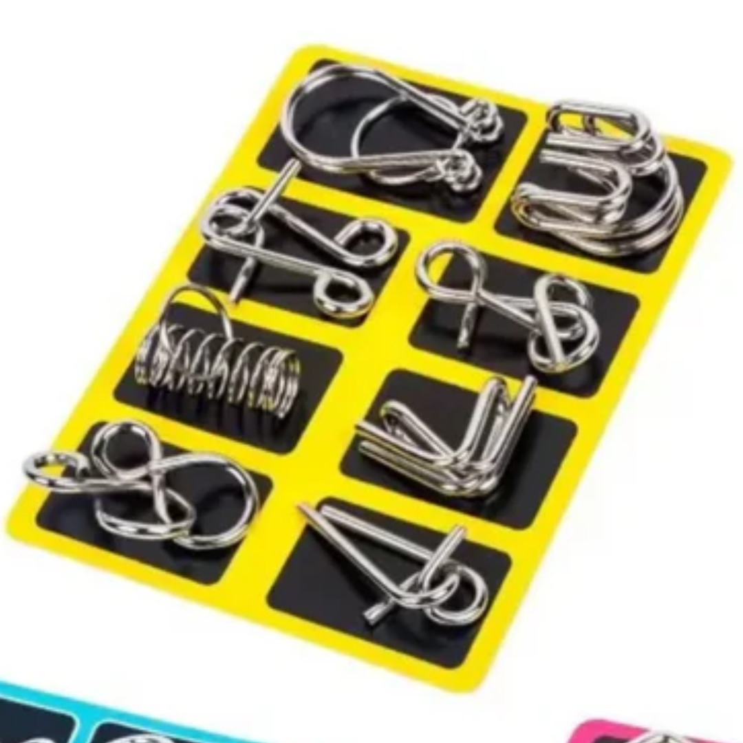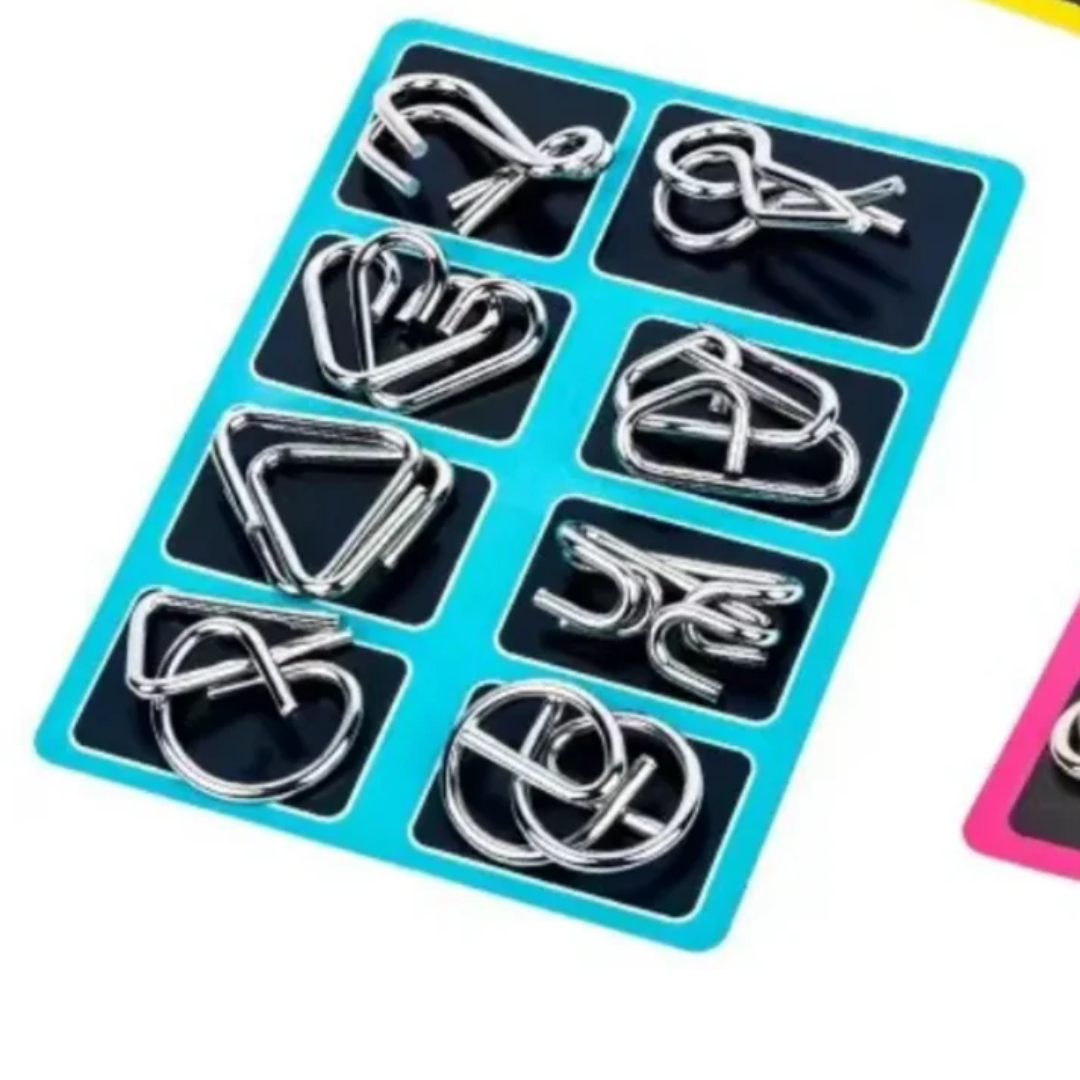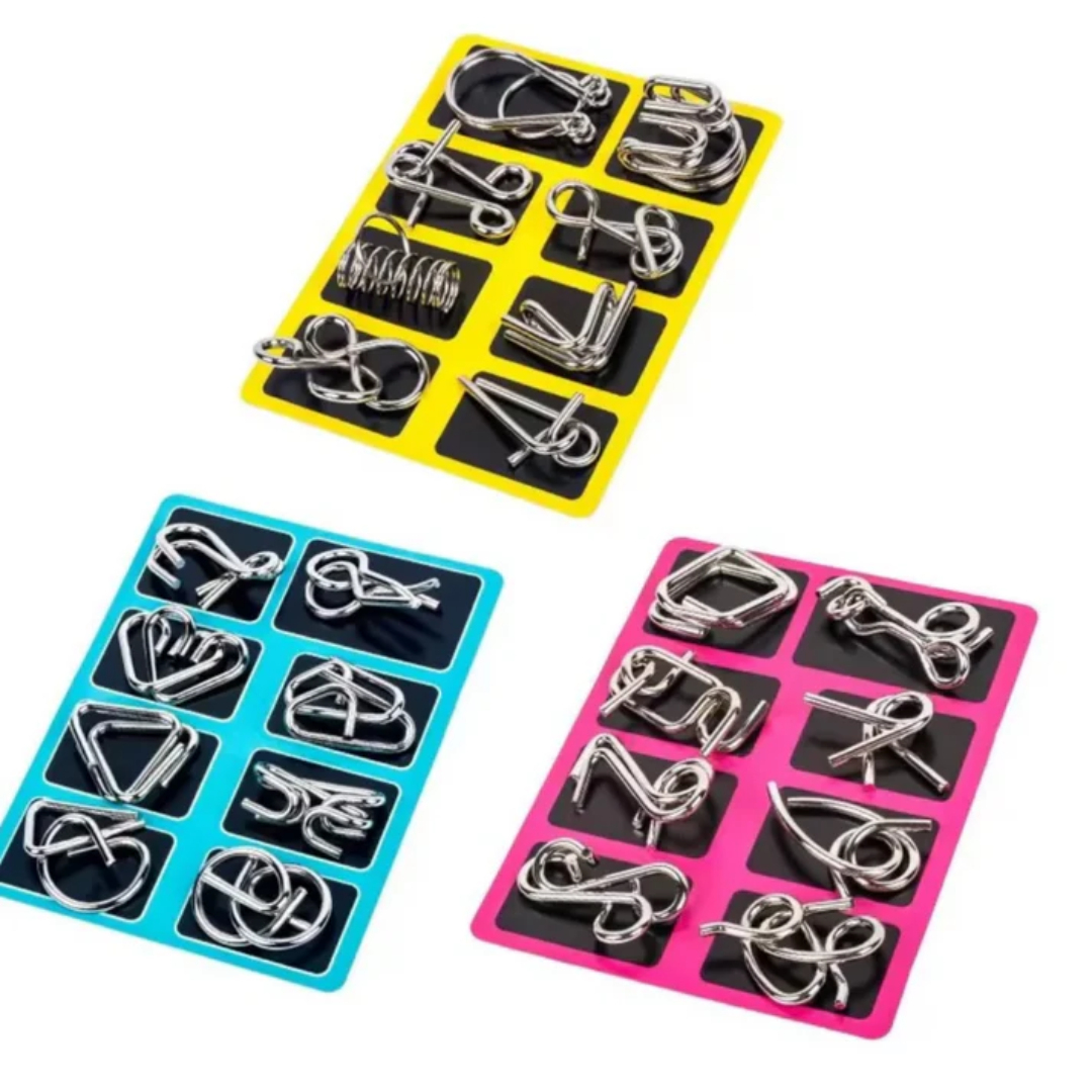 Et sæt smarte puslespil, der udfordrer hjernen og holder de små hænder i gang. Lavet af solidt, glat metal, som er sikkert at lege med, og som motiverer til kreativ tænkning og vedholdenhed, indtil gåden er løst.