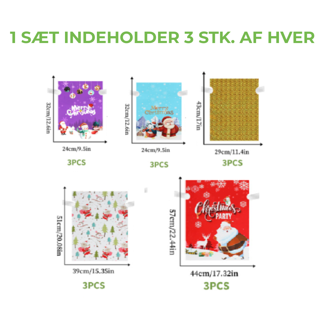 - Festlige designs: Flere størrelser og glade julemotiver, der får dine gaver til at skille sig ud.