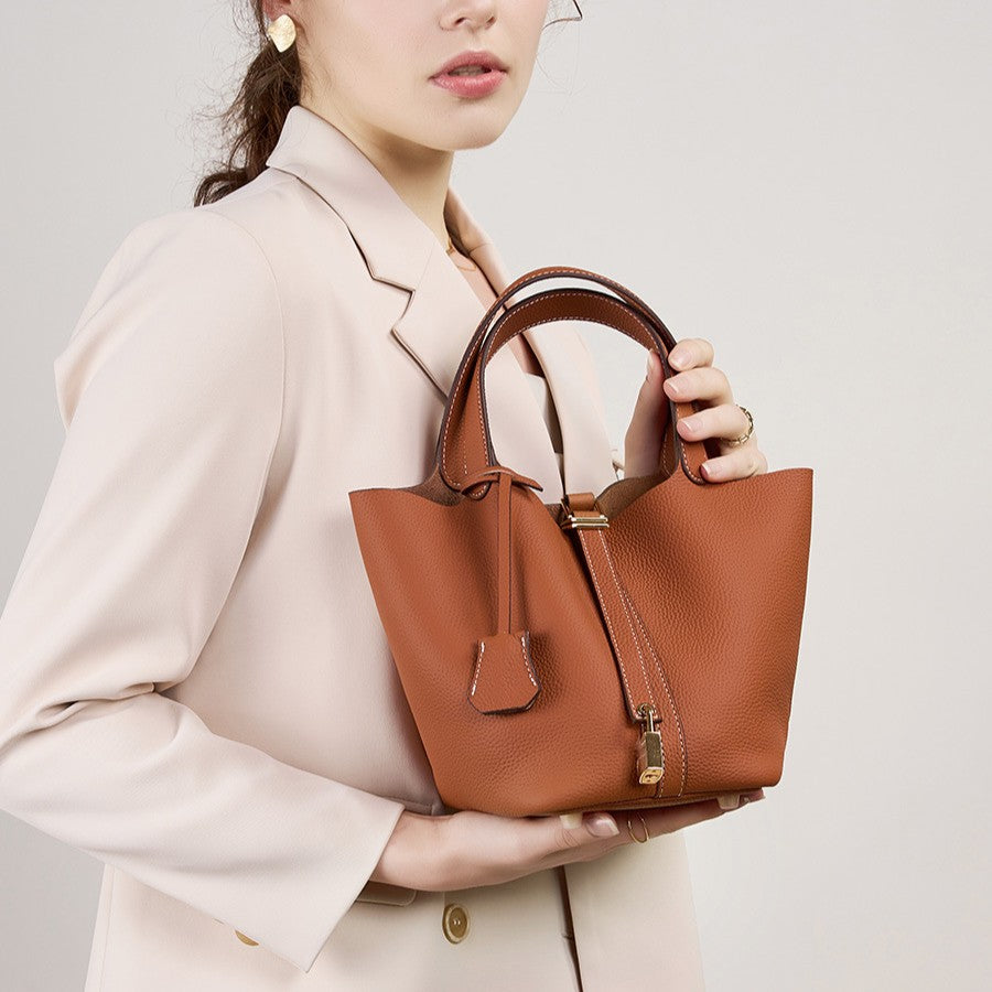 LåsTasken er ikke bare en accessory—den er et udtryk for raffineret smag og hverdagsalsidighed. Omhyggeligt designet til den moderne kvinde forener den elegant sofistikation med funktionelt design. Med sin luksuriøse lædertekstur og karakteristiske låsedetalje løfter den straks ethvert outfit og gør den til den perfekte ledsager til enhver lejlighed.