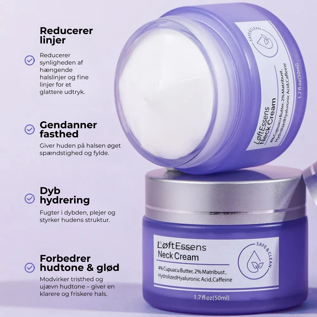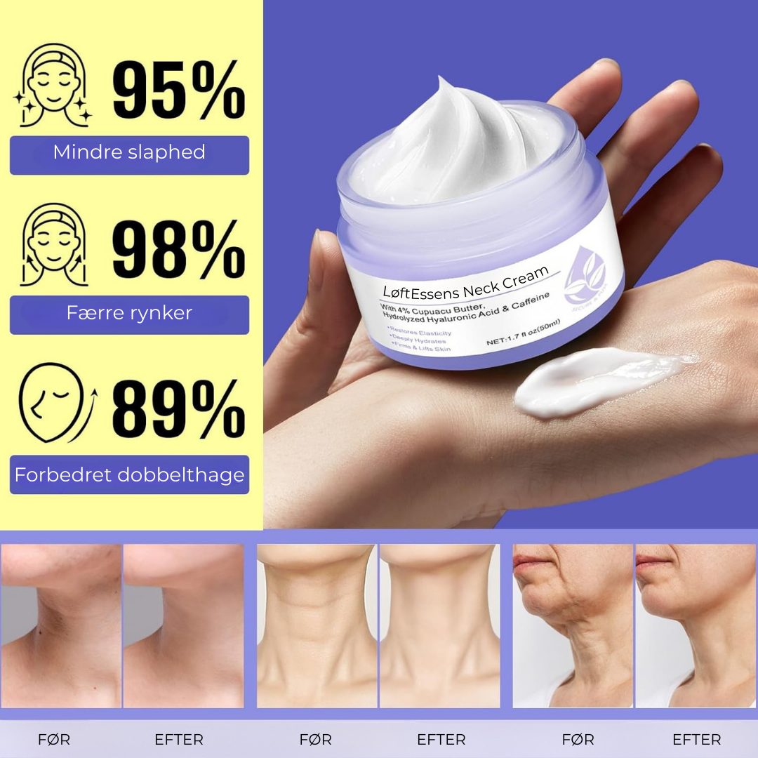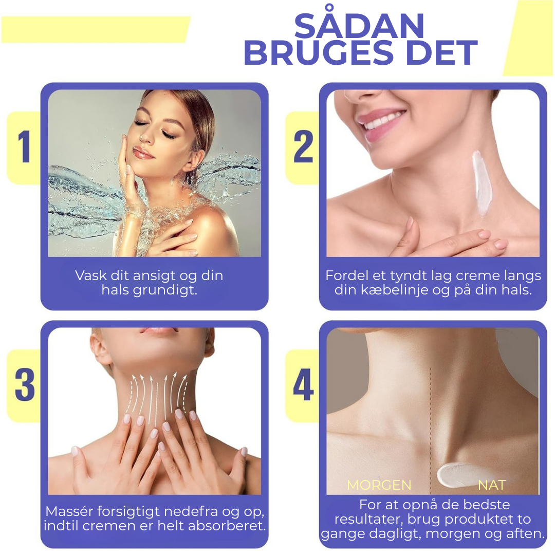 ⭐ “Jeg har prøvet både klinikbehandlinger og dyre sera, men dette er den første creme, der virkelig virker. Min hals ser flere år yngre ud.” – Therese N.