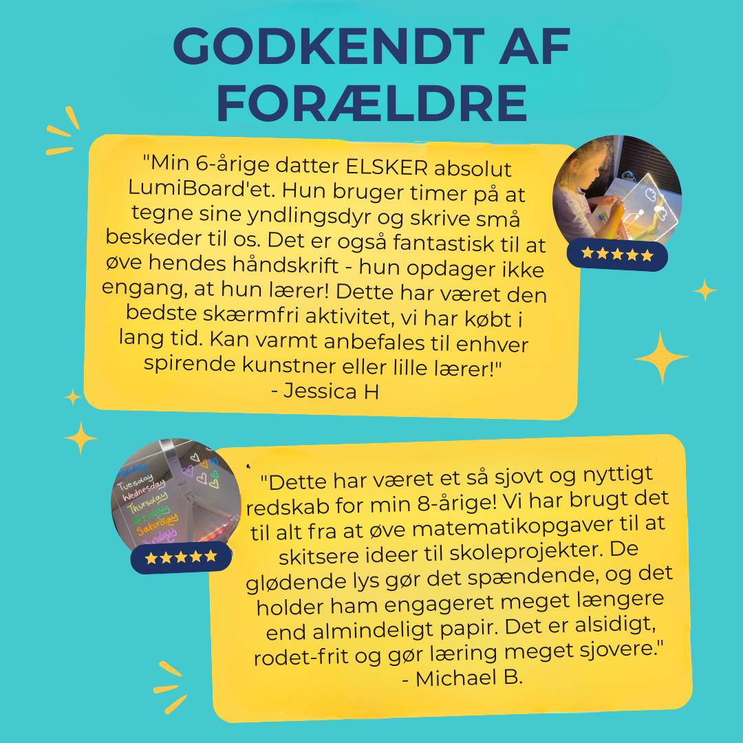 “Lyskunst™ har været et kæmpe hit hos mit barnebarn! En fantastisk skærmfri aktivitet, der styrker hendes finmotorik. Helt klart pengene værd!”