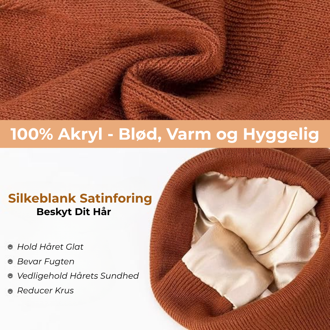 Satinforet Hue™ Damehuen med Satinfor – 100% Akrylstrik, Hårbeskyttende & Ultrablød KomfortSatinforet Hue™ Satinforede Slouchy Beanie kombinerer mode, funktionalitet og hårpleje i én smukt designet vinteressentiel.
