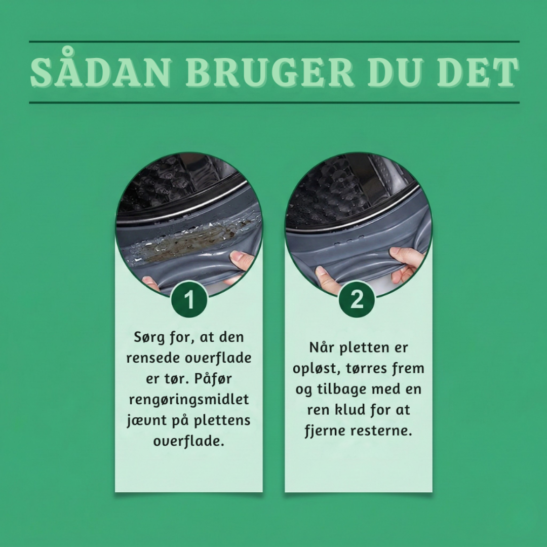 - Overfladekompatibilitet: Flisefuger, silikoneforseglinger, vaskemaskinens gummilister, håndvaske, vandhaner, bruseområder, glasdørsskinner