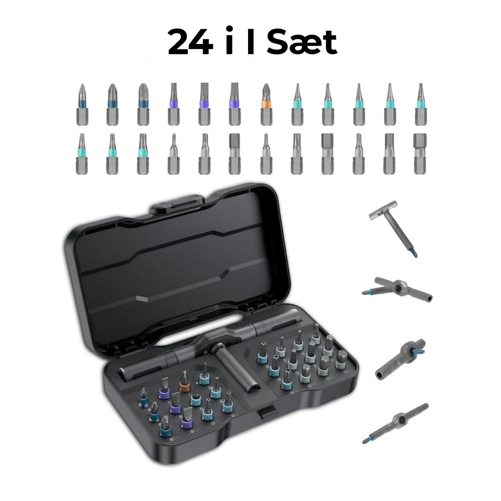Sættet indeholder præcisionsfremstillede, rustfrie stålbits, der er bygget til at modstå daglig brug uden at bøje eller slides ned. Fra sarte elektroniske enheder til små mekaniske reparationer – hver bit låser sikkert på plads og leverer den styrke og præcision, du kan stole på. Det ergonomiske håndtag sikrer et behageligt, skridsikkert greb – selv under længere tids brug.