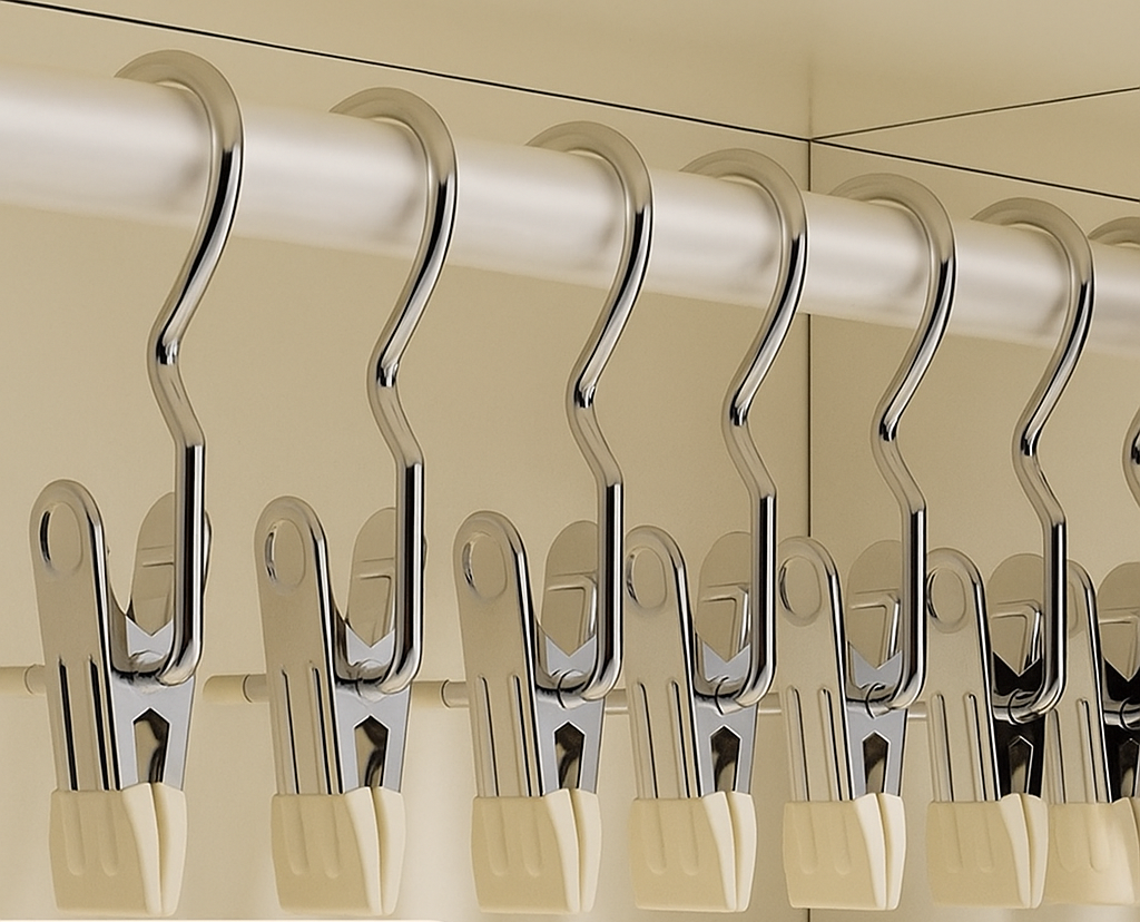Disse sæt lette klips i rustfrit stål er ideelle til både hjemmebrug og rejser. Perfekte til ophængning af tøj, hatte, bukser og meget mere – uden rustpletter eller beskadigelse af dit tøj.
