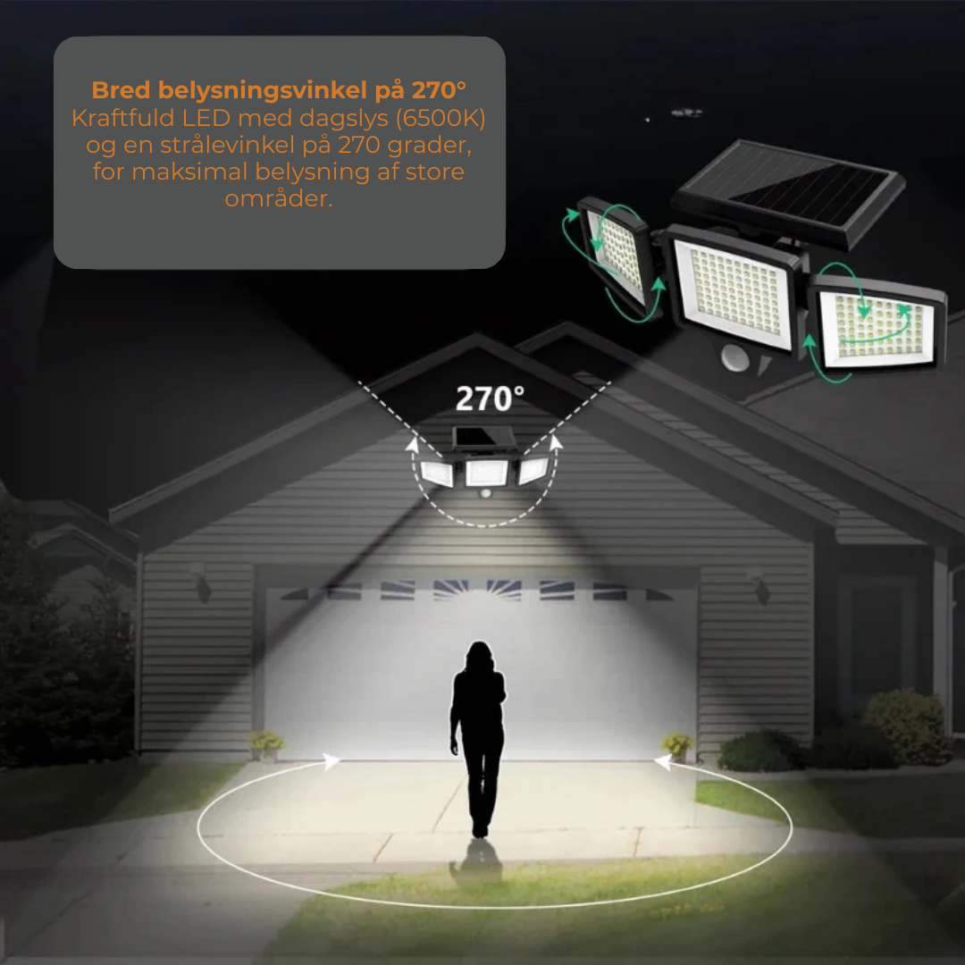 - Type: Solcelledrevet udendørsbelysning med bevægelsessensor