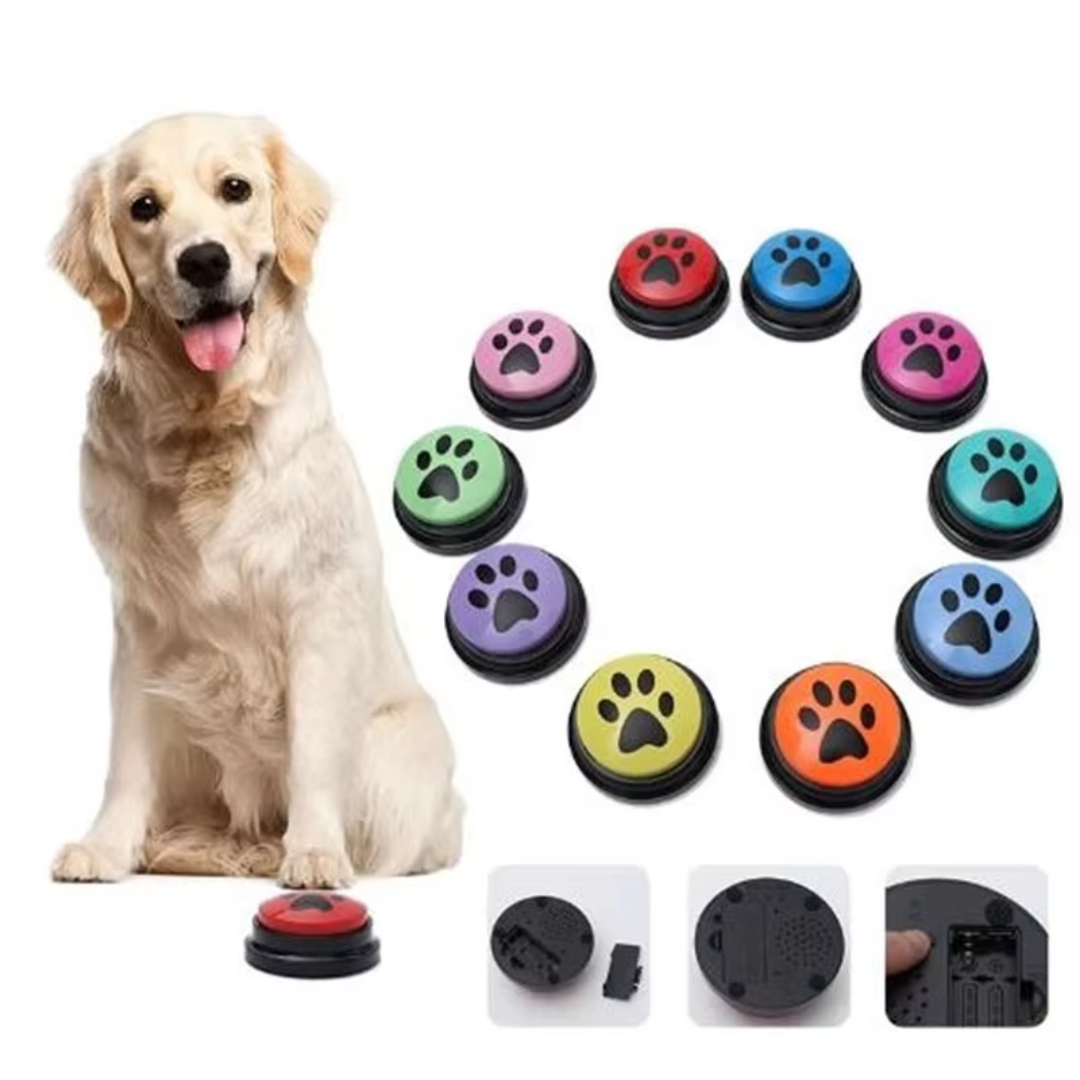 Disse taleknapper er populære til hundetræning! Optag ord som “mad”, “ud”, “leg” eller “vand”, og lær din hund at trykke for at udtrykke behov. En sjov og lærerig måde at styrke jeres bånd på