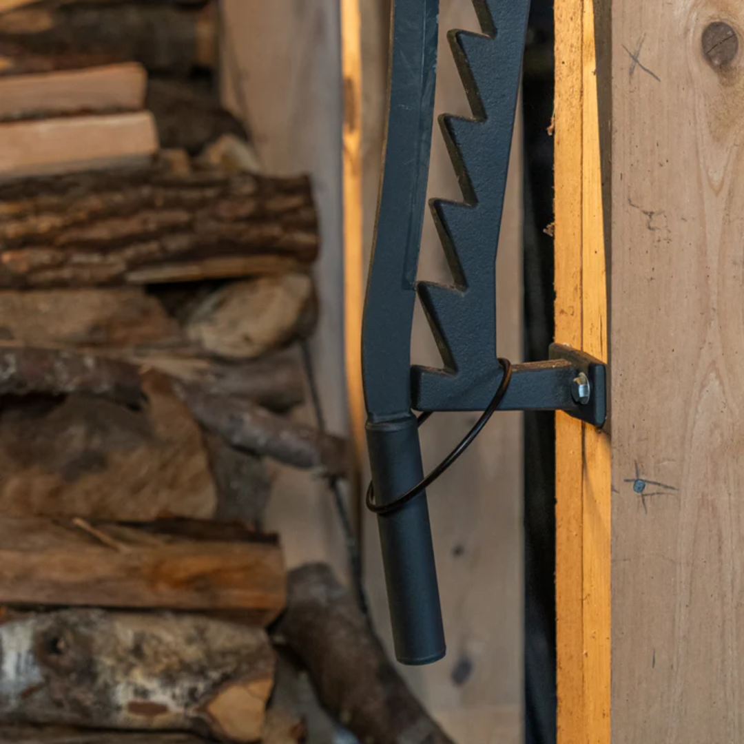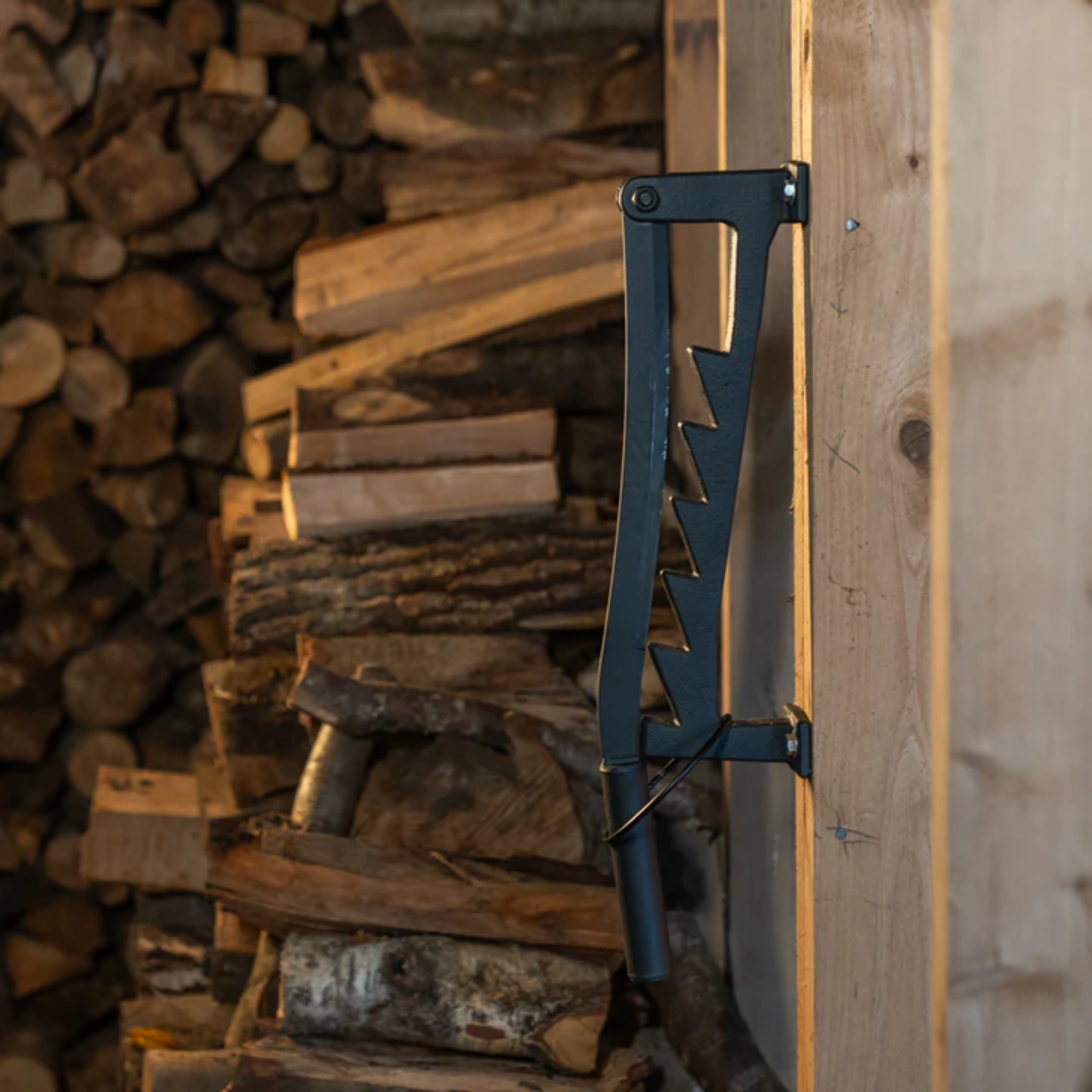 Perfekt til både indendørs og udendørs brug – den kan monteres tæt på pejsen eller i brændeskuret for nem adgang året rundt. De justerbare trin på monteringen gør det muligt at arbejde med forskellige længder af brænde – fra korte stykker til op til 38 cm lange.