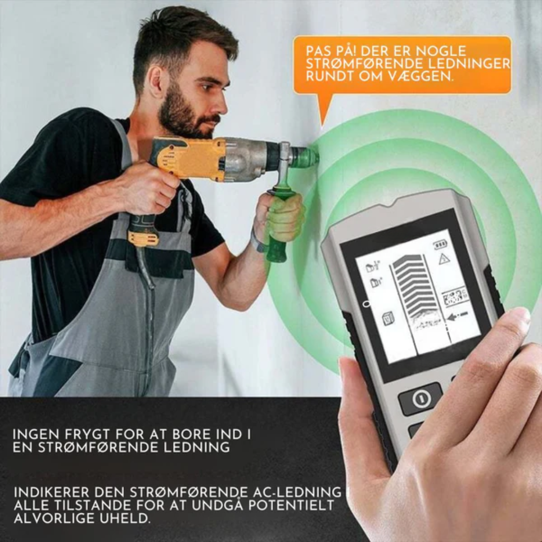 Den letlæselige digitale skærm viser præcist, hvad der gemmer sig bag væggen, mens lydalarmen giver dig øjeblikkelig feedback. På den måde går du aldrig glip af et skjult rør eller kabel, og du kan arbejde med fuld kontrol og sikkerhed.