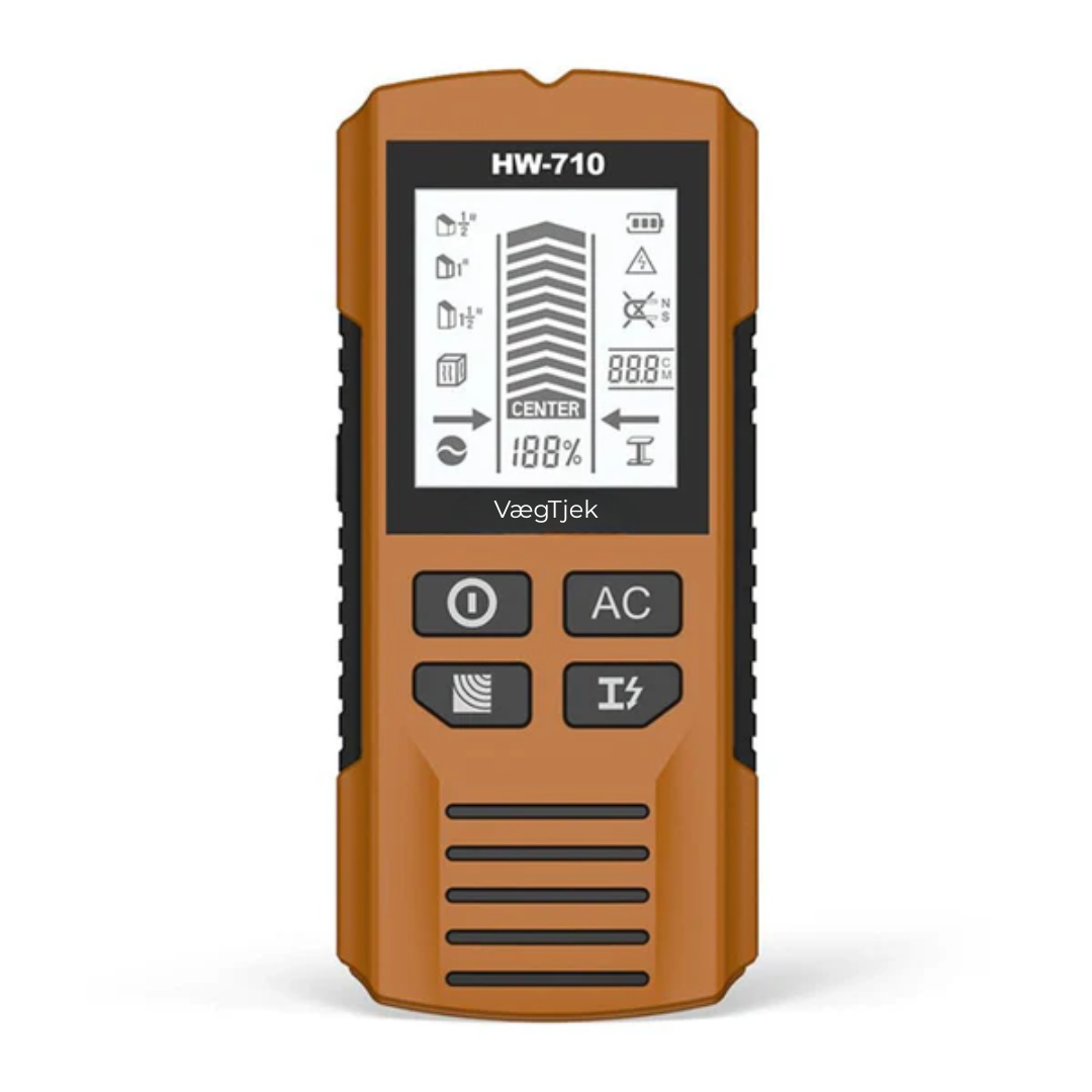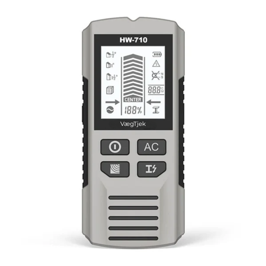 VægTjek™ er kompakt, let og designet til at kunne betjenes med kun én hånd. Med enkle trykknapper skifter du hurtigt mellem detektion af træ, metal og kabler, hvilket gør den perfekt til både gør-det-selv-projekter og professionelle opgaver.