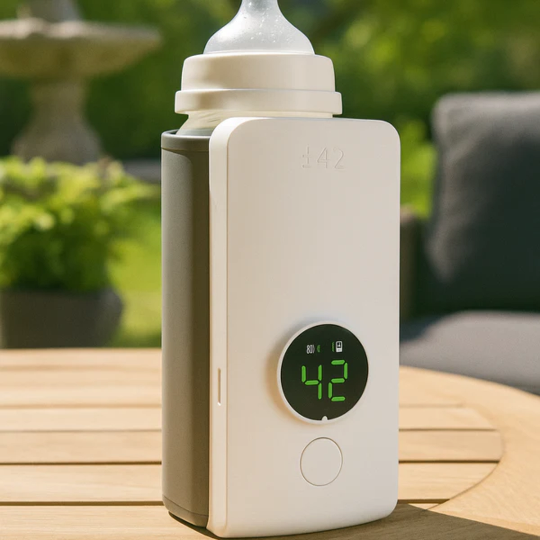 At give dit barn mad behøver ikke at være stressende. Med vores bærbare flaskevarmer kan du hurtigt og sikkert opvarme mælk eller babymad, uanset om du er hjemme, på rejse eller ude en hel dag. Kompakt, trådløs og genopladelig – den sikrer, at dit barn altid får mælk ved den ideelle temperatur.